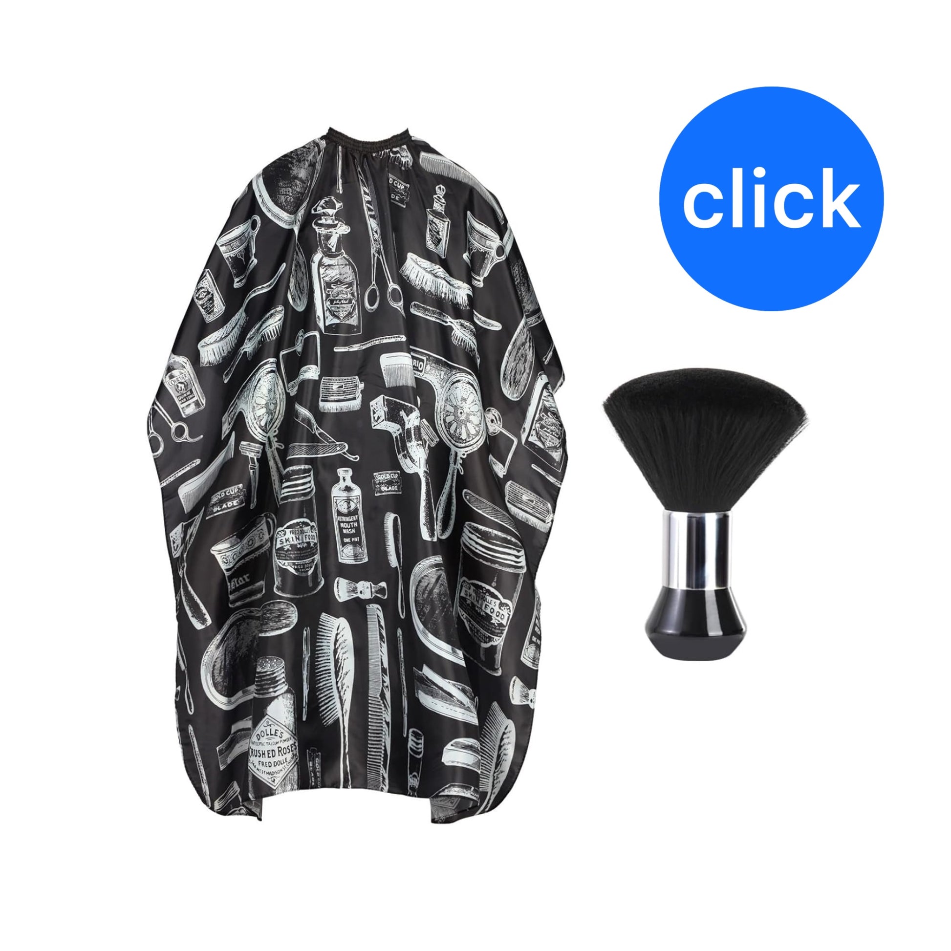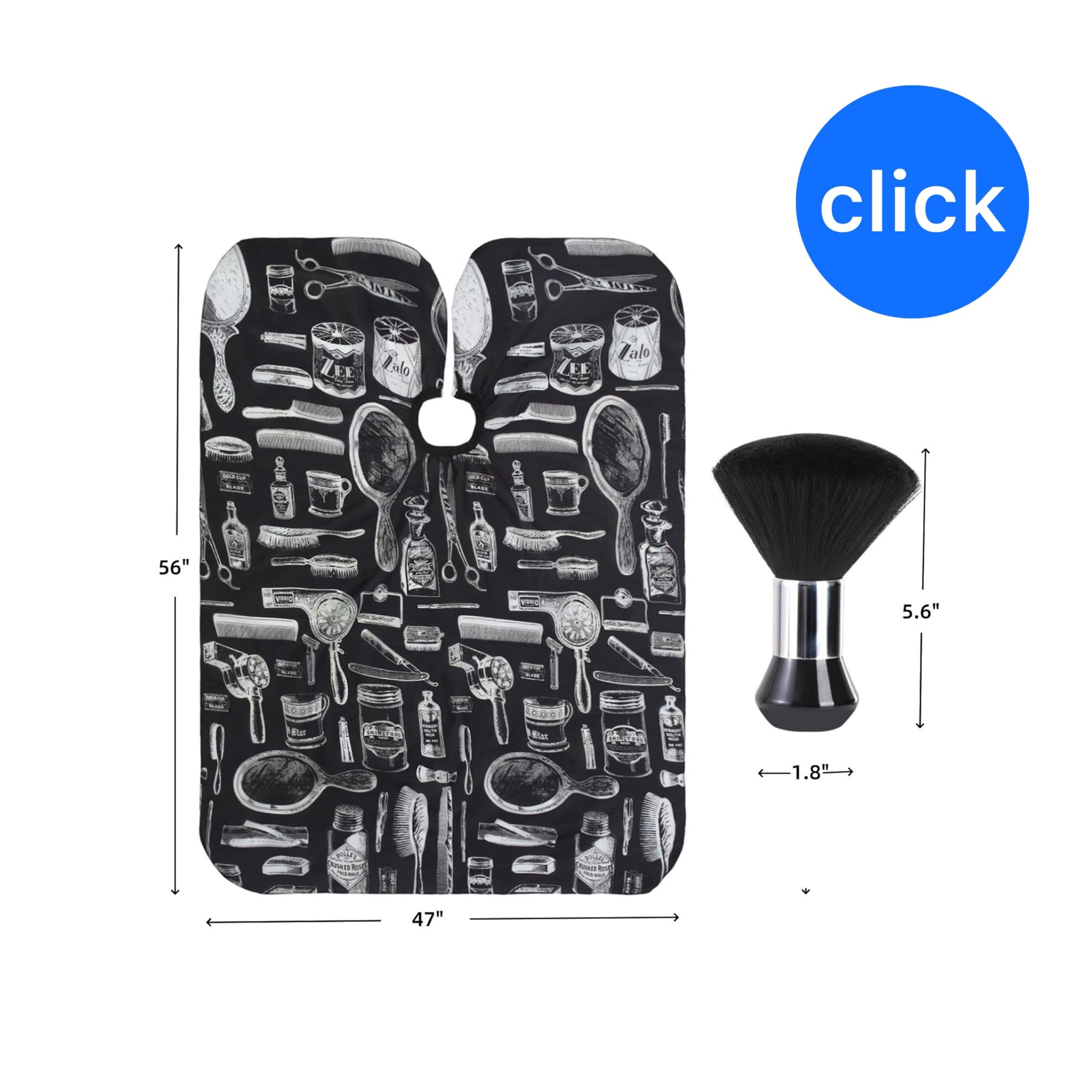 Capa profesional de corte de pelo con cepillo para el cuello, capa de peluquería de gran tamaño para hombres, mujeres y niños, Negro con patrón blanco de suministros de peluquería