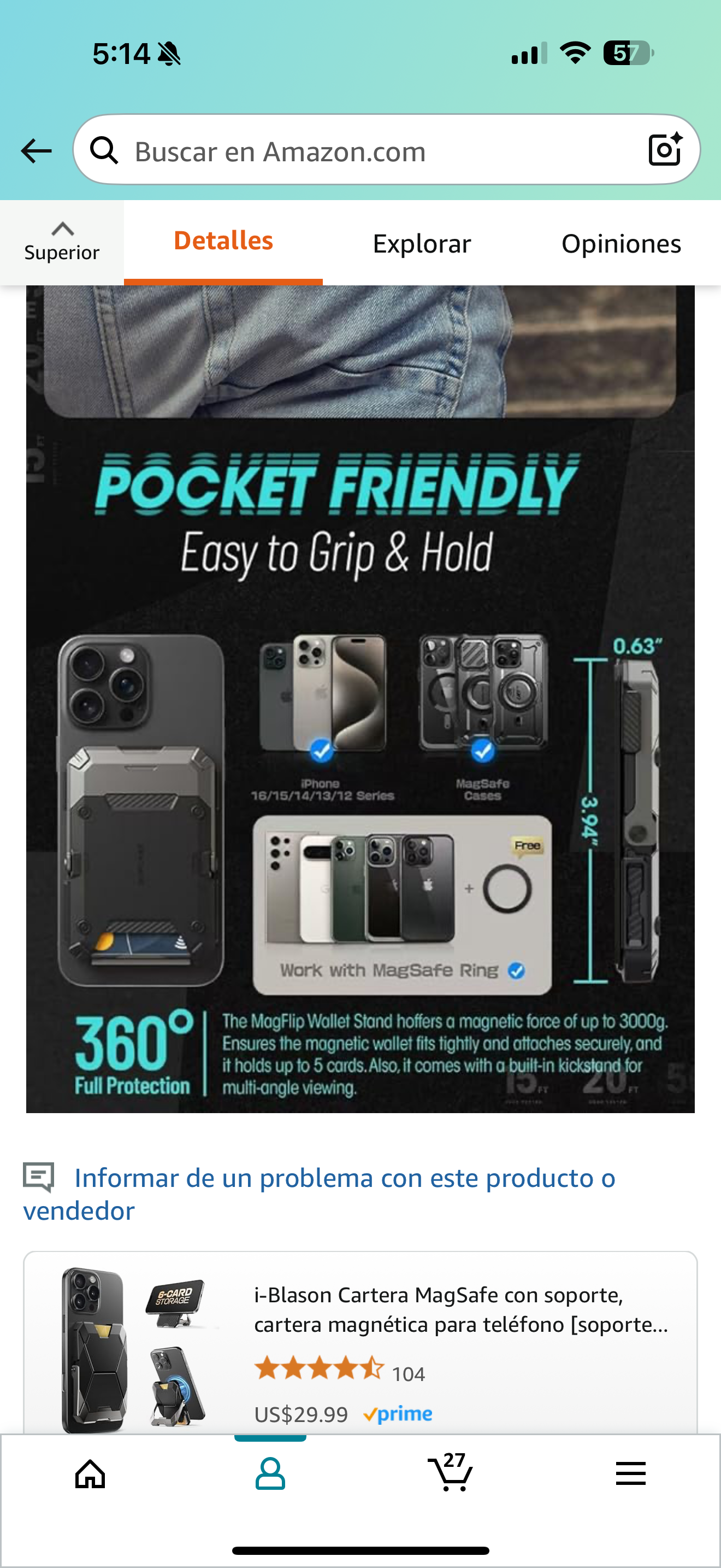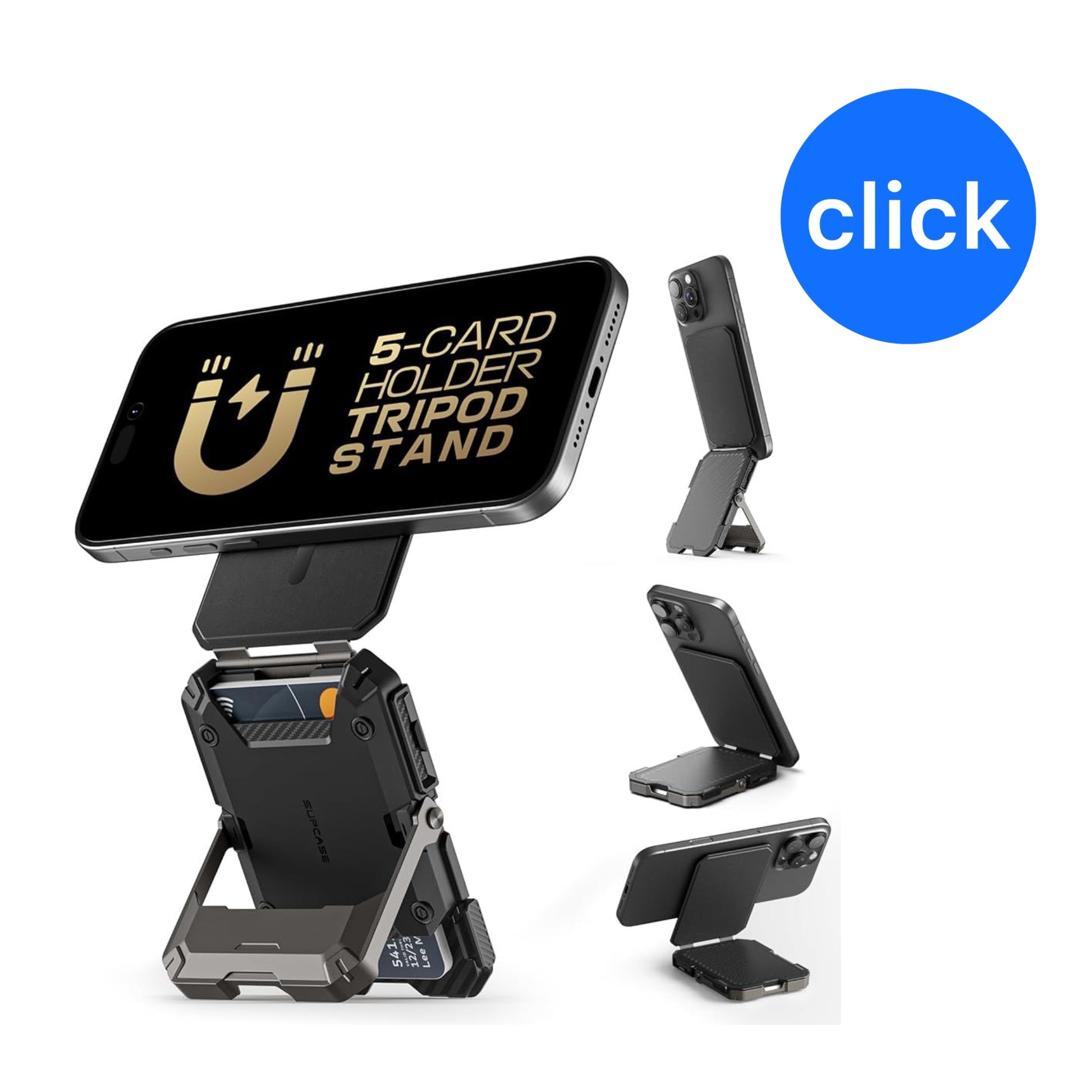Cartera MagSafe con soporte, cartera magnética para hombres, [capacidad para 5 tarjetas] [soporte ajustable] [bloqueo RFID] Soporte para tarjetas de crédito de teléfono trípode para iPhone 16